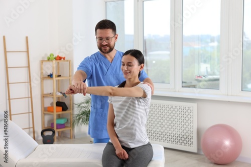 Fototapeta premium Physiotherapist working with patient in rehabilitation center