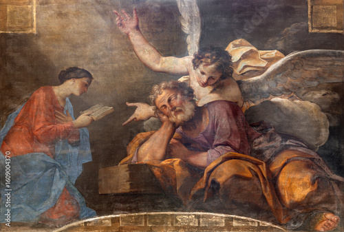 Obraz premium PIACENZA, ITALY - MAY 19, 2025: The fresco of Dream of St. Jospeh in...