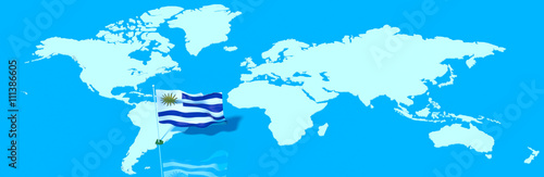 © albasu, Obraz premium Pianeta Terra 3D con bandiera al vento Uruguay