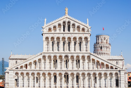 Fototapeta premium Piazza dei Miracoli or Piazza del Duomo. Leaning Tower and Cathedral. Tuscany, Italy