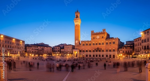 © Faozan, Fototapeta premium Piazza del Campo Siena Italy at Dusk with Torre del Mangia.