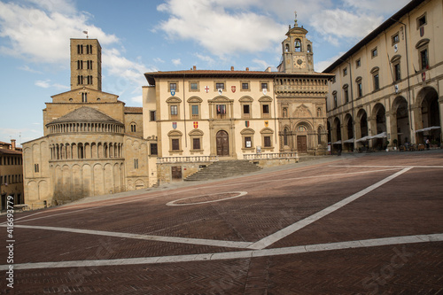 Fototapeta premium Piazza Grande Big square in Arezzo, historical city in Tuscany, Italy
