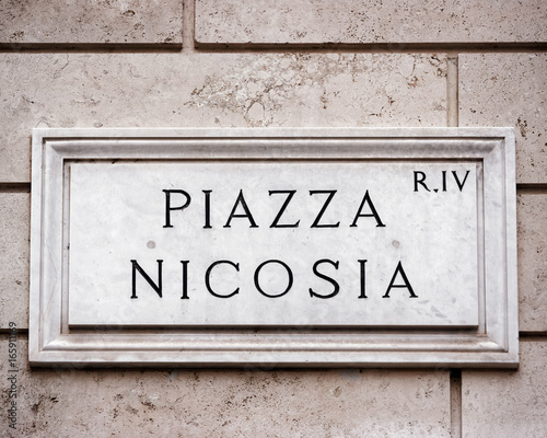 Obraz premium Piazza Nicosia sign on wall in Rome