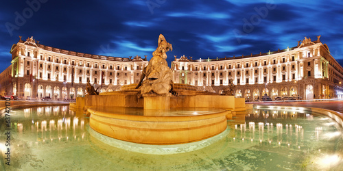 © TTstudio, Fototapeta premium Piazza Repubblica, Rzym nocą, panorama