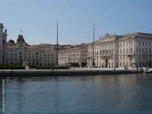 Naklejka premium Piazza Unità d'Italia in Trieste, panorama from Molo Audace of its buildings like Palace of Lloyd, Palace of the Austrian Lieutenancy and Town