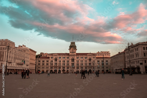 © francobelliniph, Fototapeta premium Piazza unità di Italia a Trieste al tramonto, Italia, Friuli Venezia Giulia
