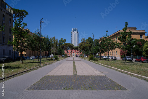Naklejka premium Piazza Viale Italia and the Torre Pontina skyscraper in Latina, Italy