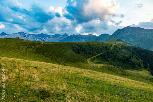 © Ldgfr Photos, Fototapeta premium Pic de Céciré dominant le plateau de de Superbagnères au coucher du soleil