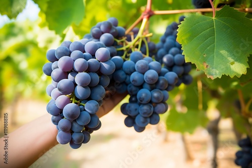 © MahmudulHassan, Fototapeta premium Picking ripe Blue grapes from Blue grapes orchard