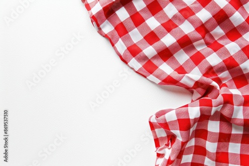 © Popelniushka, Fototapeta premium Picnic Menu. Chequered Red Tablecloth on White Background with Copyspace