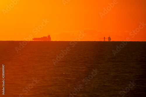 © Kouzi.Uozumi, Fototapeta premium 朝焼けの水平線と船影PICT9665