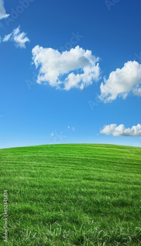 Fototapeta premium Picture a beautiful landscape with clean, green grass stretching out under a clear blue sky