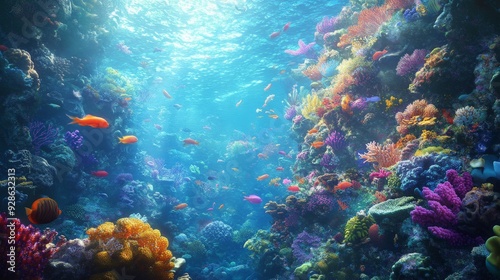 Fototapeta premium Picture a swim in a coral reef, the water teeming with vibrant fish and coral...