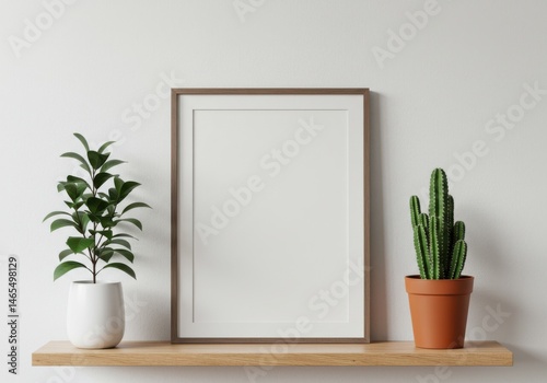 © mdshafiq, Fototapeta premium Picture frame mockup on shelf on light background, for art, photo, poster display