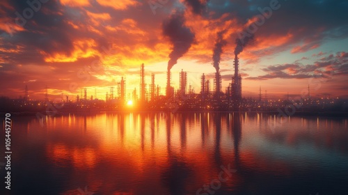 © Roman, Naklejka premium Picture of a factory with smoke coming out of it