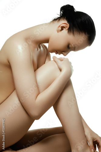 © looking2thesky, Fototapeta premium Picture of a healthy naked woman with perfect body over white