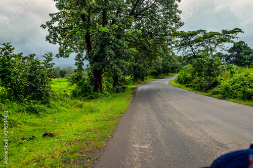 Fototapeta premium Picture of a path taking to the dense forest in monsoon in India