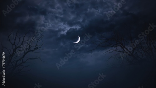 Fototapeta premium Picture of a somber night sky with a chilly moon