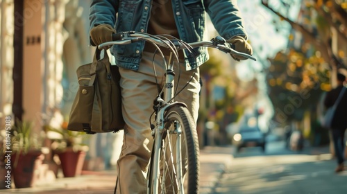 © Annawet boongurd, Obraz premium Picture of a young man riding a bicycle. Car Free Day.