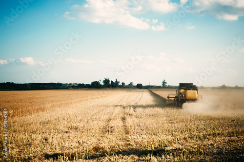 Naklejka premium Picture of combine harvester machine harvesting crops