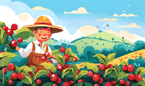 © NaLan, Fototapeta premium Pictures of coffee and coffee beans, coffee plants