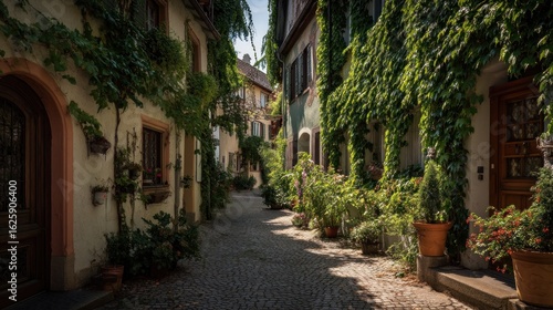 © Opaopi, Fototapeta premium Picturesque alleyway with lush greenery