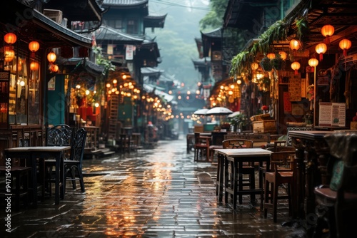 Naklejka premium Picturesque Asian-Inspired Fantasy City with Traditional Architecture,...