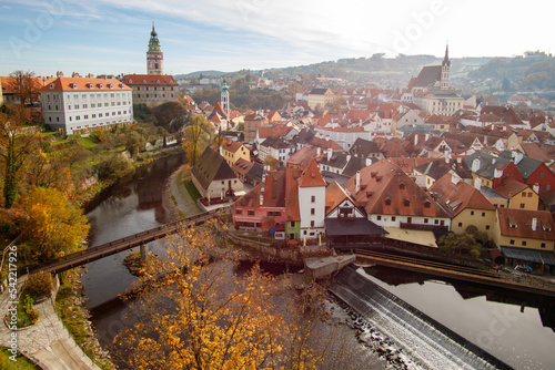 Fototapeta premium Picturesque autumn cityscape of Cesky Krumlov overlooking its historic centre...