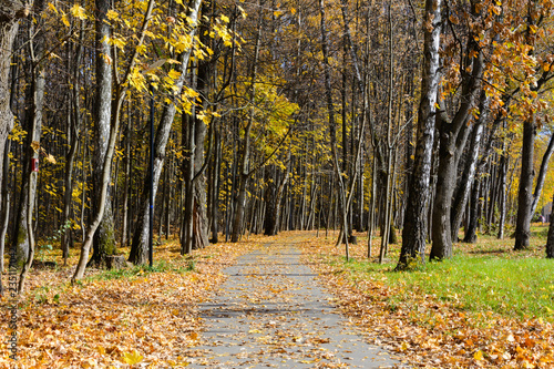 Obraz premium picturesque autumn Park, path in fallen yellow leaves