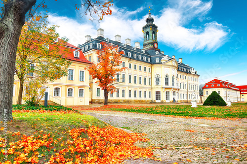 Obraz premium Picturesque autumn view on the Hunting Castle Hubertusburg
