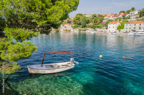 © Darios, Fototapeta premium Picturesque bay in Splitska village. Splitska is situated on the north coast of Brac island in Croatia.