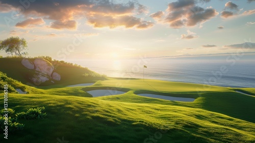 Fototapeta premium Picturesque Coastal Golf Course with Vibrant Greenery,