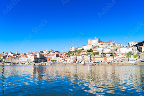 Naklejka premium Picturesque, colorful view at old town Porto, Portugal with bridge Ponte Dom...