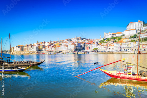 Fototapeta premium Picturesque, colorful view at old town Porto with bridge, Portugal with...