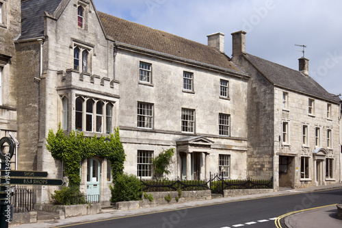 Naklejka premium Picturesque Cotswold stone houses on the main street through Painswick,...