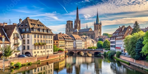 Naklejka premium picturesque downtown Strasbourg with cathedral in background Alsace Region France AI-Created Content