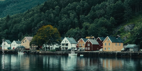 Naklejka premium Picturesque Fishing Village By A Norwegian Fjord