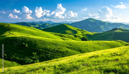 © Yeni, Obraz premium Picturesque Green Hills Under a Sunny Sky.