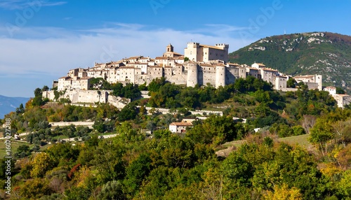 © Bara, Fototapeta premium Picturesque hilltop town nestled in autumn foliage