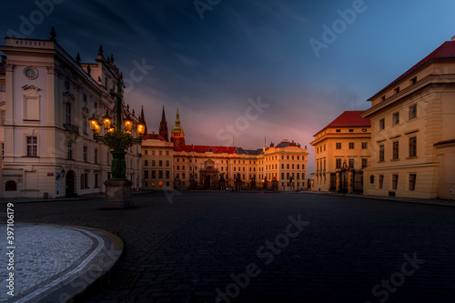 © Pavel Rezac, Naklejka premium Picturesque historical Prague, Beautiful sunset over Prague, Prague Castle and Hradcany district, UNESCO World Heritage Site, Czech Republic
