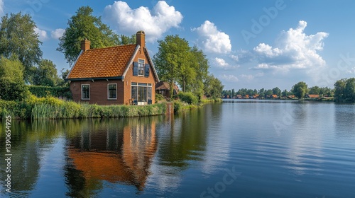 © Grameh, Fototapeta premium Picturesque Lakeside Cottage Serenity
