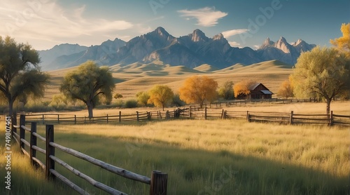© Arceli, Fototapeta premium Picturesque landscape of a fenced ranch from Generative AI
