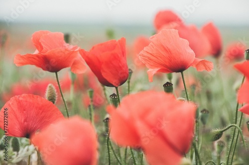 Naklejka premium Picturesque landscape of a vast field of vibrant red blossoms