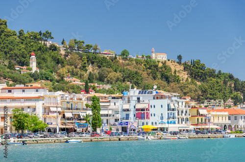 Naklejka premium Picturesque landscape of Zakynthos town. Zakynthos island on Ionian Sea is...