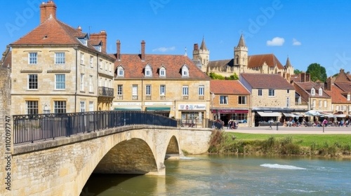 Fototapeta premium Picturesque Medieval Town with Historic Bridge and Colorful Buildings
