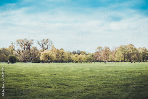 © Novanture, Fototapeta premium Picturesque open field under a clear blue sky