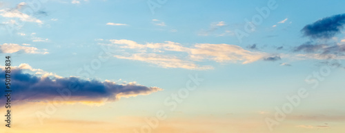 Fototapeta premium Picturesque sky with fluffy clouds at sunset, panorama