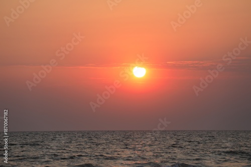 © New Africa, Obraz premium Picturesque sky with sun over sea at sunset