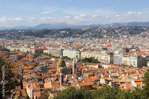 Fototapeta premium Picturesque view from Shatto's hill. Red roofs of the old city,