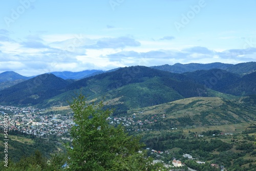 Fototapeta premium Picturesque view of beautiful mountains under cloudy sky